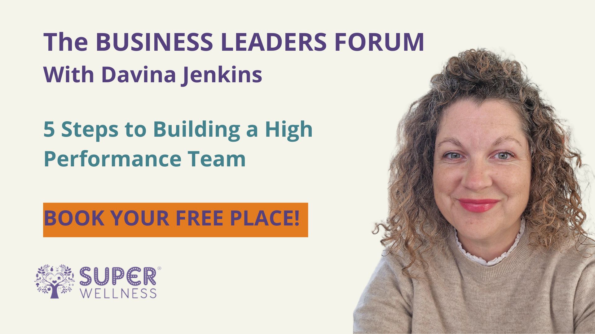 Want to hear more about building high performance teams in a way that benefits both business and employees? Join one of our upcoming Business Leader Forum online events. Davina Jenkins will be sharing some unique insights and practical steps for business leaders. Find out more here.