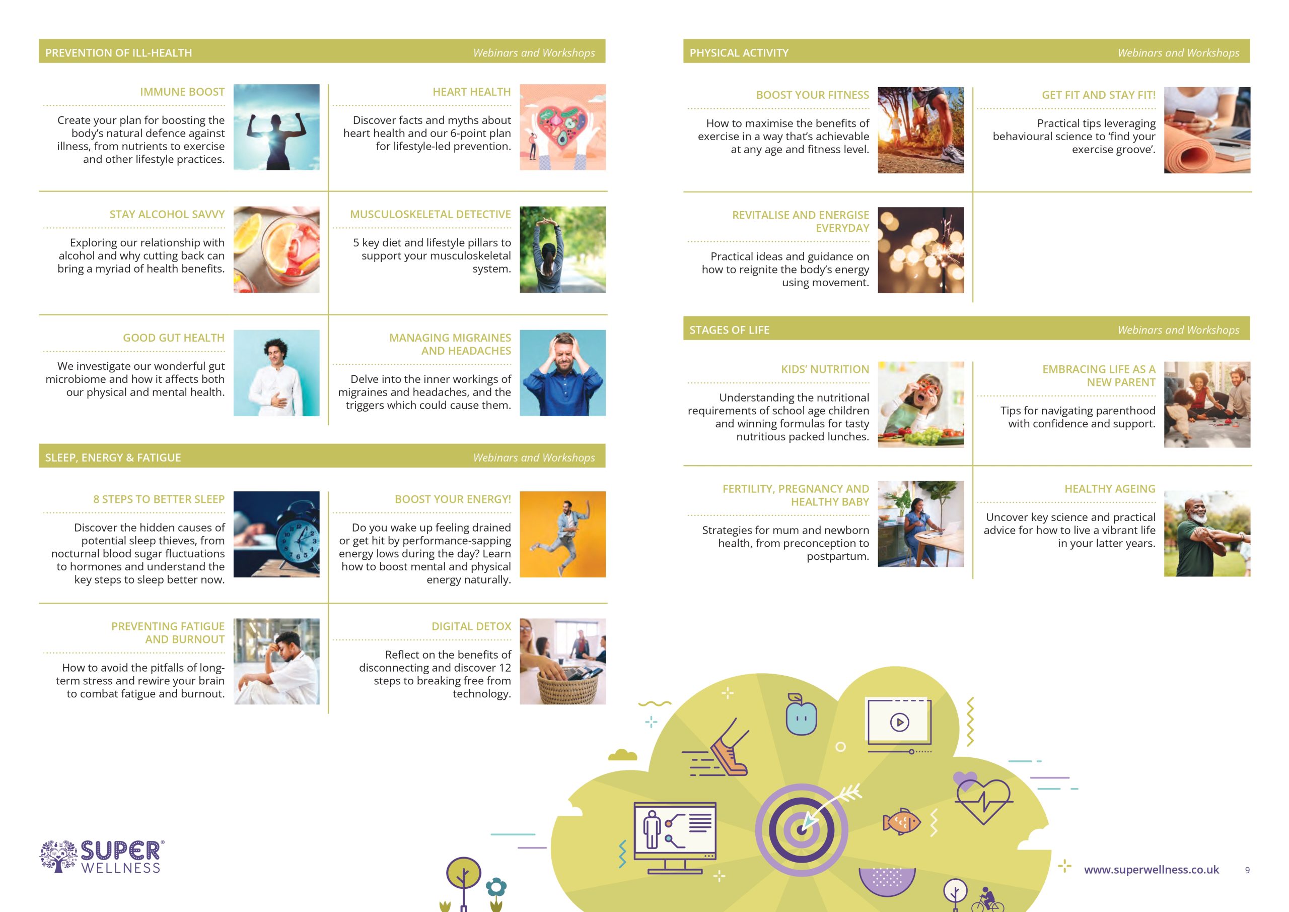 Simply click on each section to view the corresponding wellbeing services and follow the link to read more detailed information.